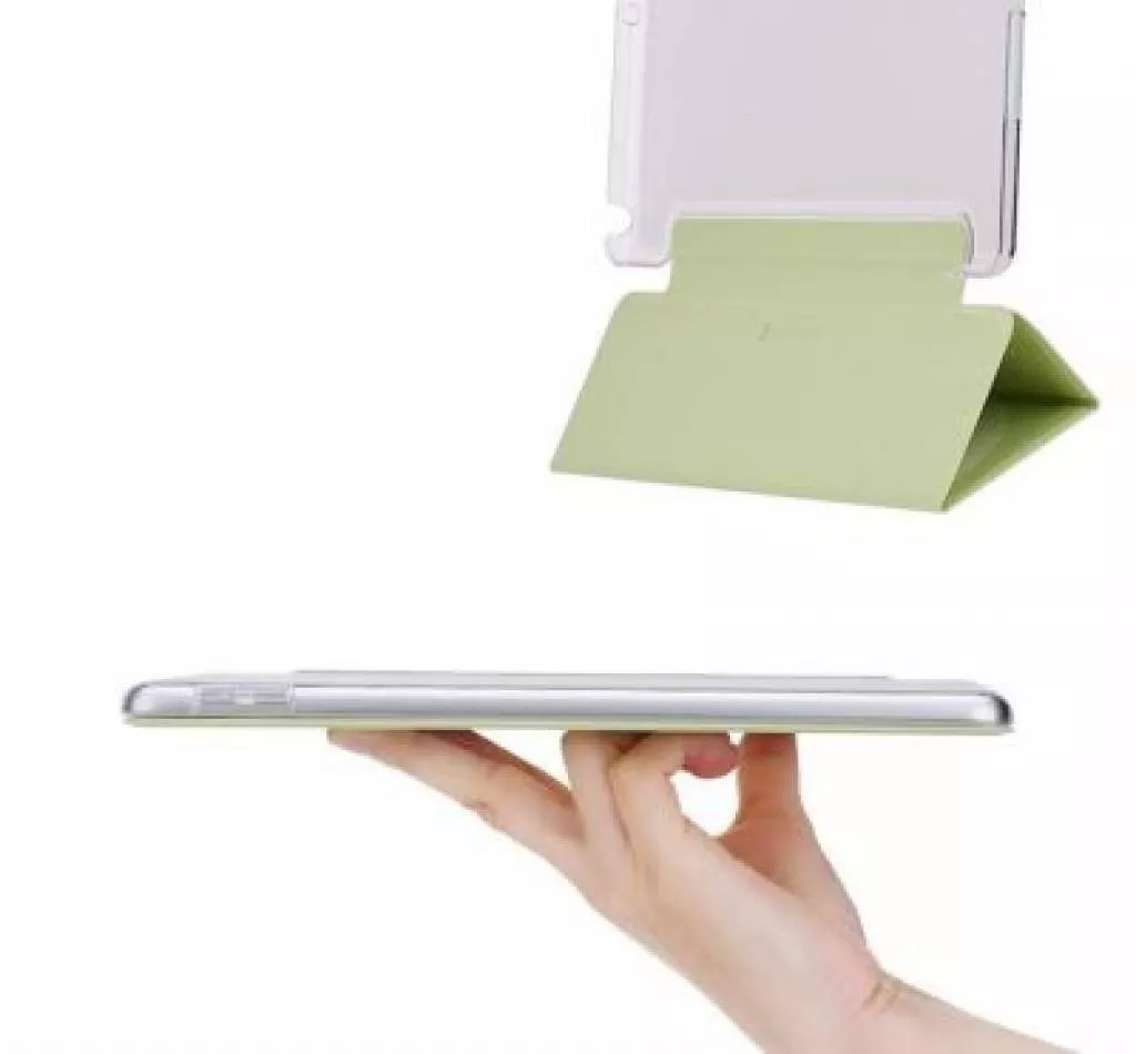 Тонкий чехол в классическом форм-факторе "книжка" имеет магнит, встроенный в обложку, автоматически "усыпляет" и "пробуждает" iPad при закрытии/открытии