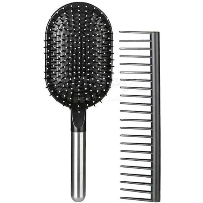 В состав набора входят два неотъемлемых элемента: массажная расчёска и гребень. Массажная расчёска обеспечивает не только эффективное расчёсывание волос, но и массажный эффект, стимулируя циркуляцию крови к волосяным луковицам. Это способствует здоровью ваших волос и способствует их росту. Гребень с частыми зубьями - это универсальный инструмент, который станет незаменимым помощником при стрижке, выравнивании кончиков, создании объемных причесок и равномерном нанесении уходовых средств.